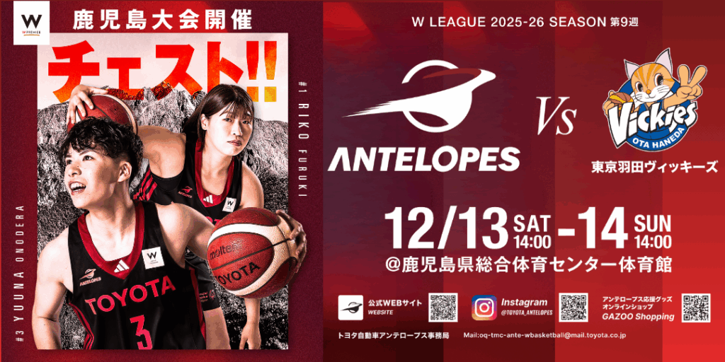 詳細は、特設ページ【12/13-14 Wリーグ2025-26 鹿児島大会開催!!」】から